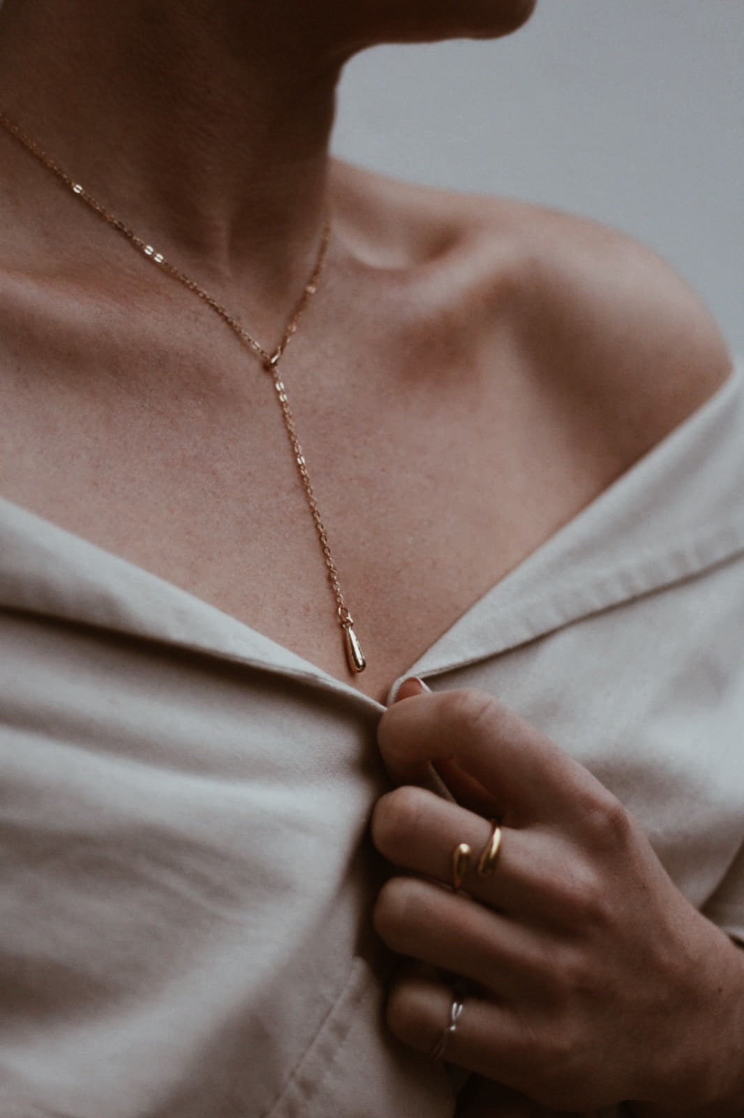The Neck Drop Necklace is a poetic fusion of sculptural design and minimalist elegance. Suspended from a fine, light-reflecting chain, this piece features a horizontal bar connector that anchors a cascading Y-drop silhouette, culminating in two teardrop-shaped pendants—each polished to a mirror-like finish and subtly tapered for fluid movement.